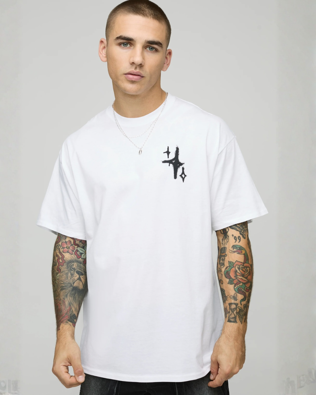 Minimal lines. Maximum attitude. The StarDrip Oversized Tee turns a simple white base into a bold graffiti-inspired statement. Featuring black...